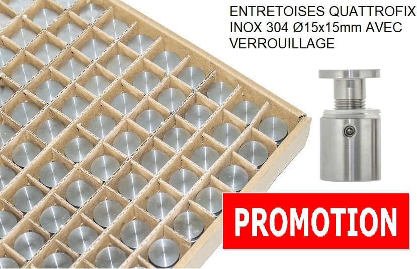 BOITE DE 100 ENTRETOISES QUATTROFIX INOX 304 Ø15x15mm AVEC VERROUILLAGE