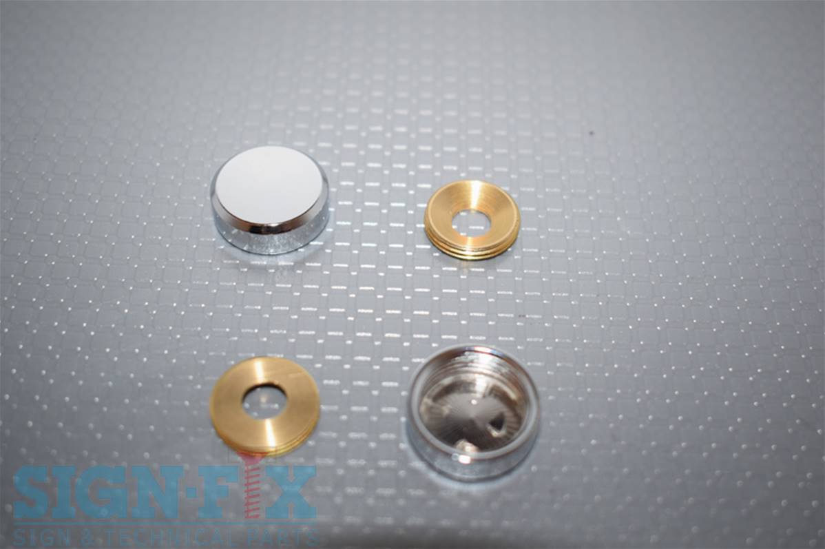 Nos caches vis sont disponibles en plusieurs diamètres :Ø12mm, Ø16mm, Ø18mm , en 3 formes: Conique, Plat Chanfreiné, Bombé et en 4 finitions  : Chrome Brillant, Aluminium Mat, Laiton, ou en Inox 304.