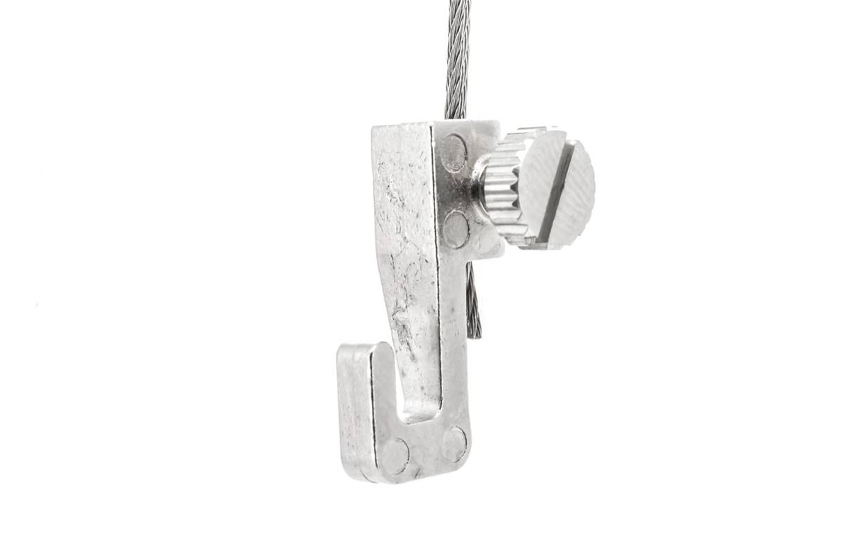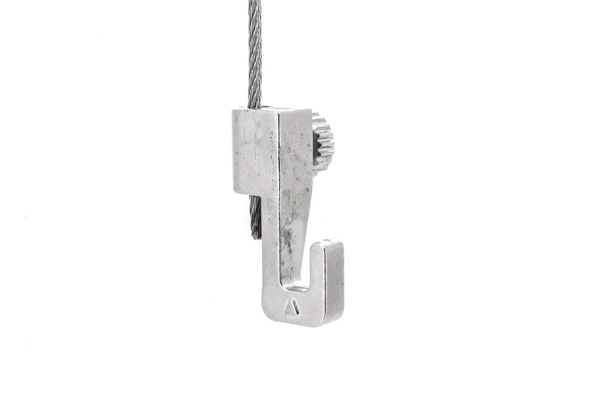Petit crochet étroit et réglable pour tableaux légers pour câble de 1 à 3 mm de diamètre.