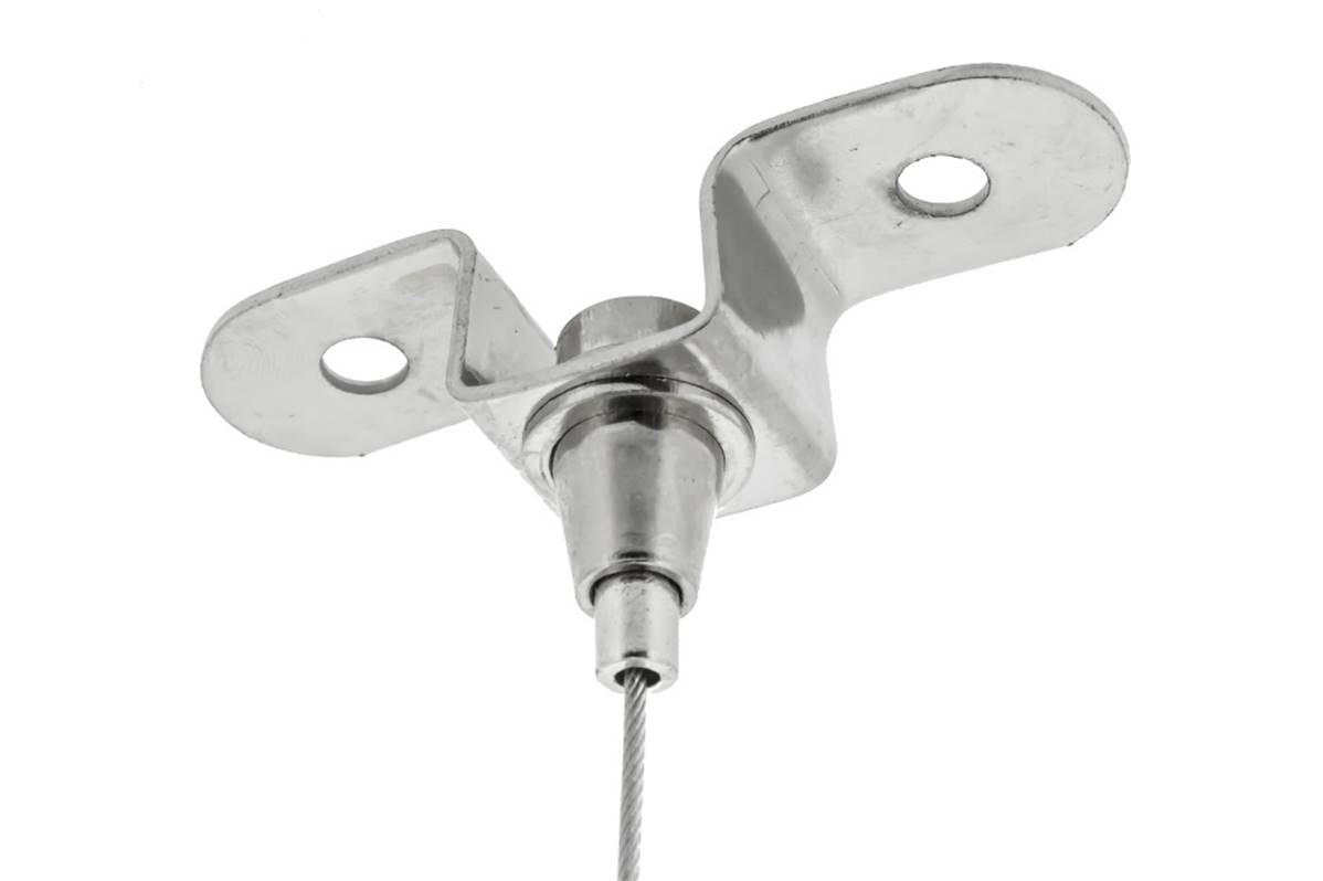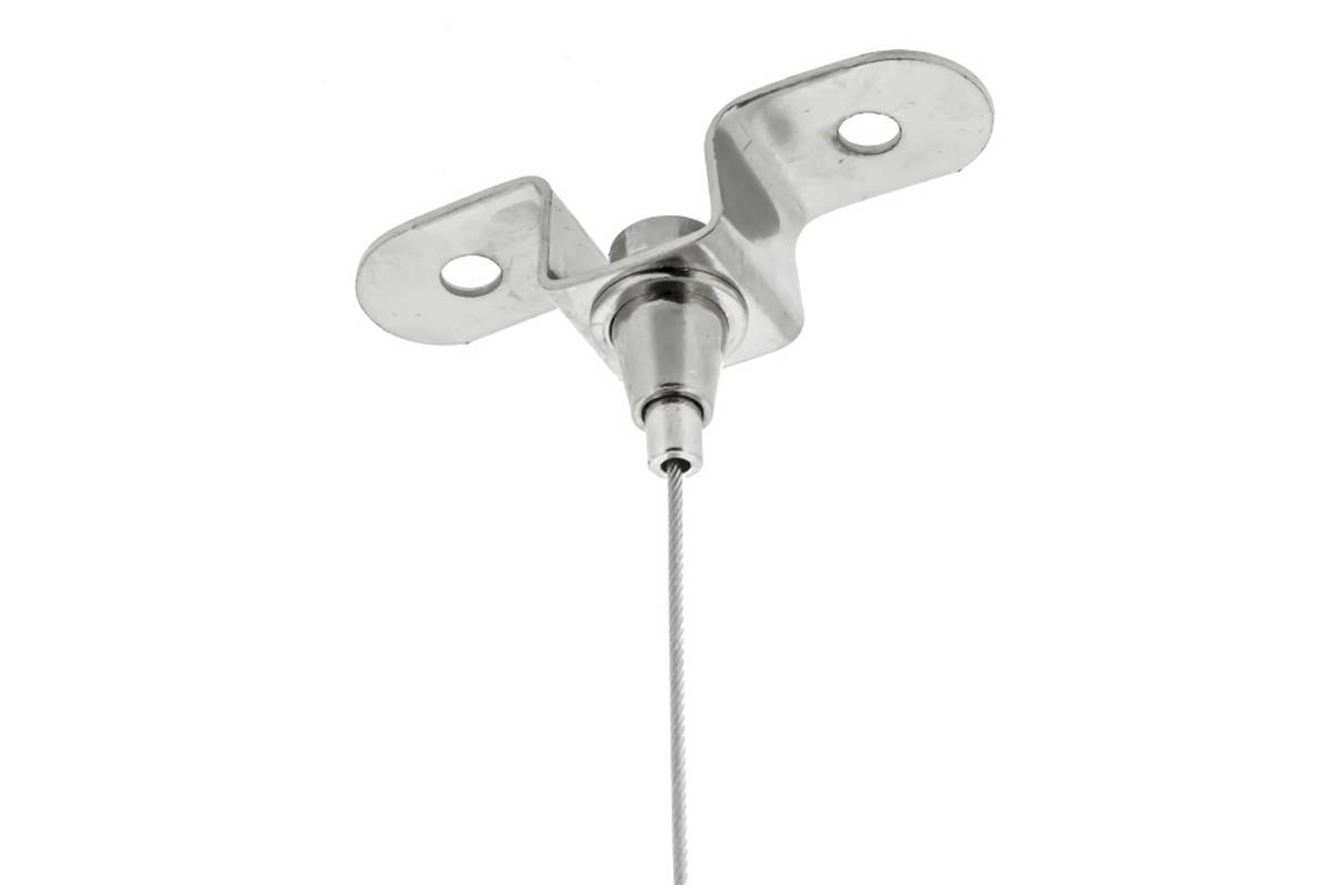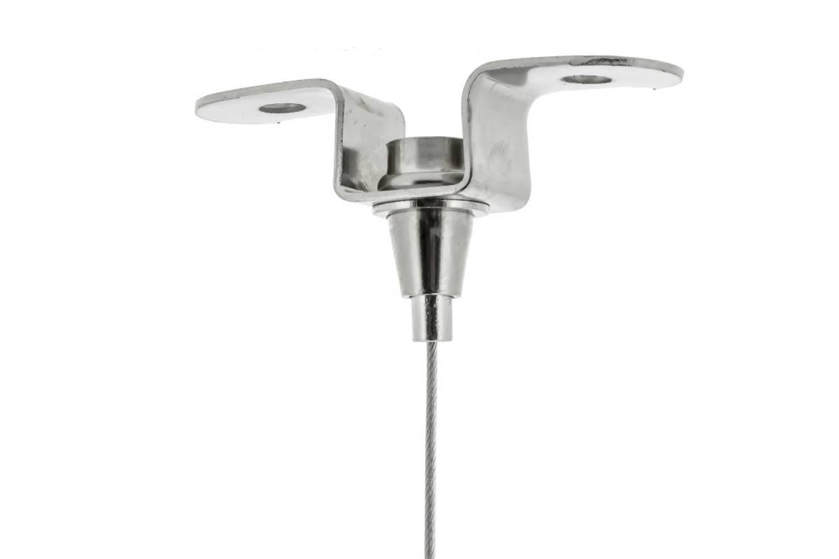Ce support de câble en acier pour le plafond est un auto-bloquant qui facilite le réglage en appuyant et en tirant le câble à travers la sortie latérale.