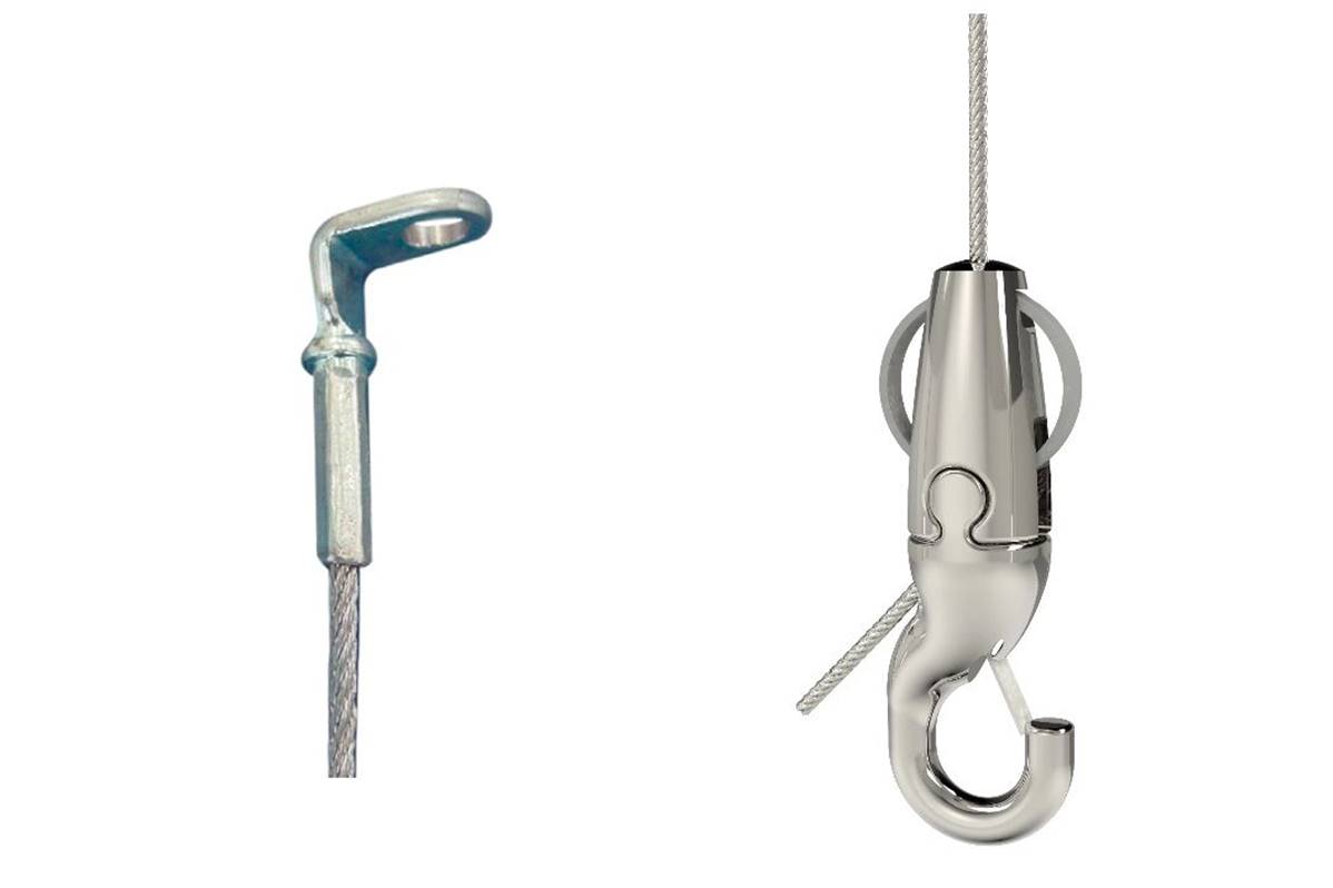 Cet ensemble de suspension par câble en acier GRIPPLE contient un câble en acier avec œillet en position 90º et un crochet.