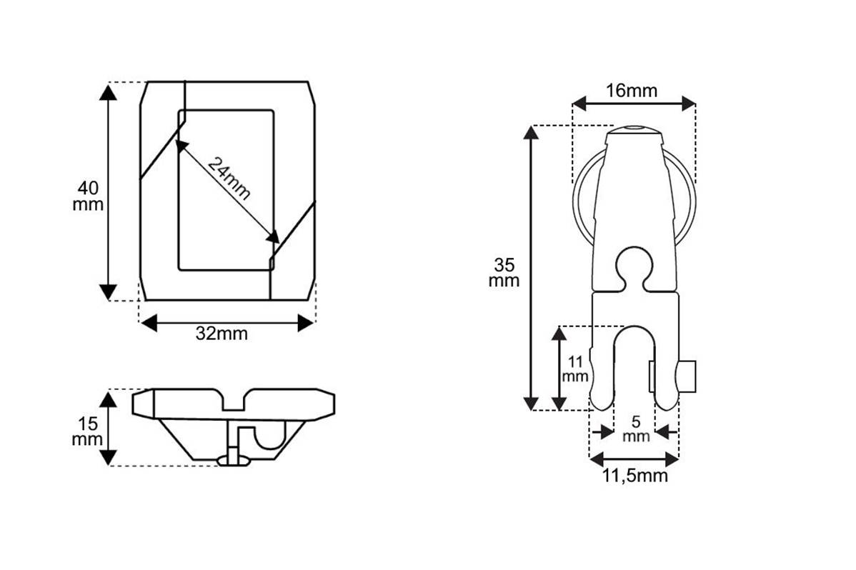 La longueur du clip est de 40 mm, la largeur est de 38 mm et convient aux profils de 24 mm.