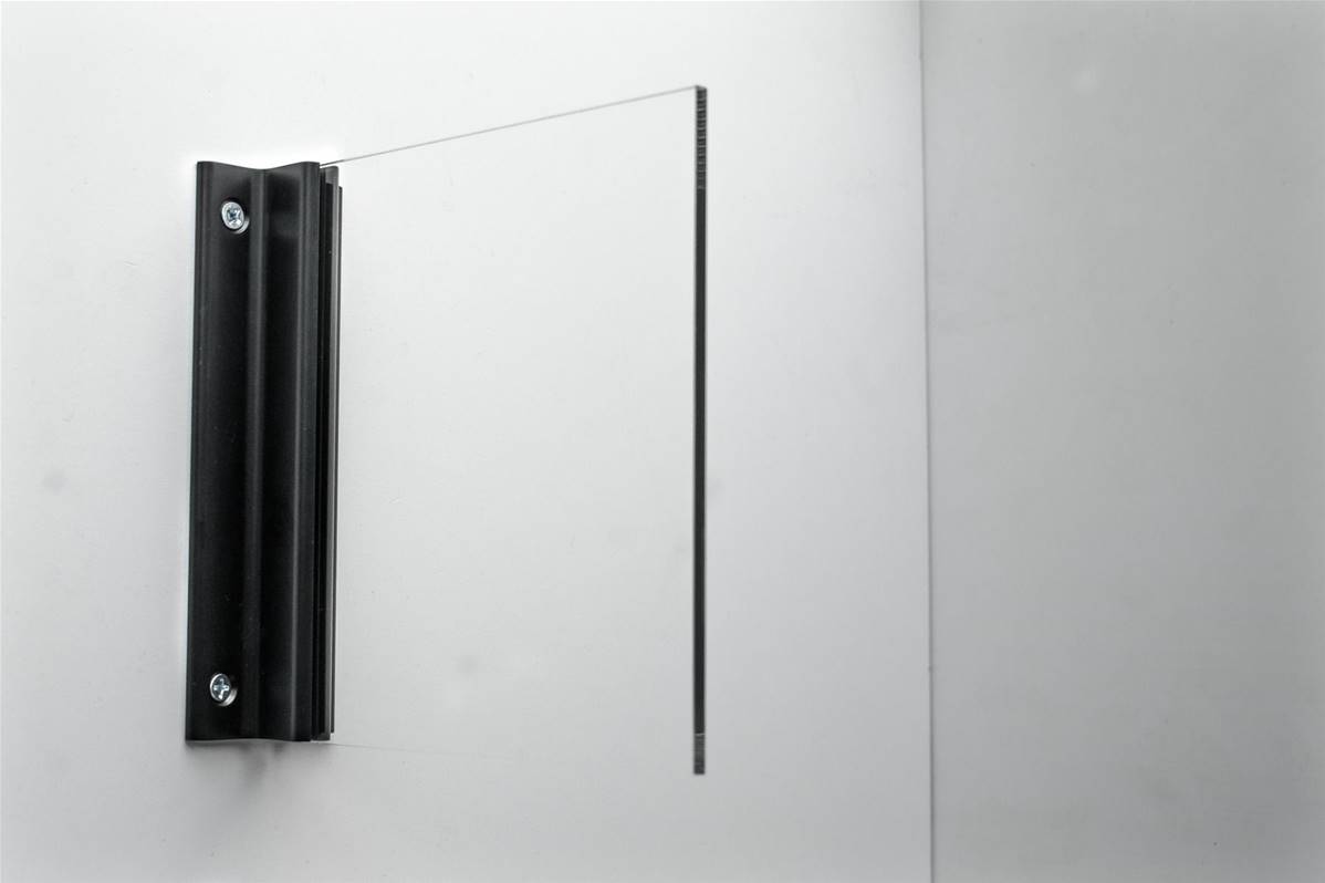 Profilé en aluminium anodisé pour la signalétique murale verticale sans perçage.