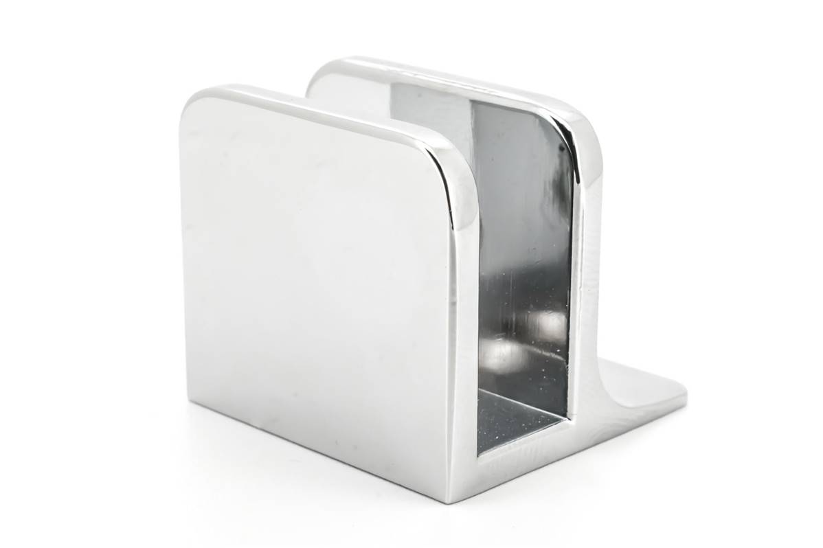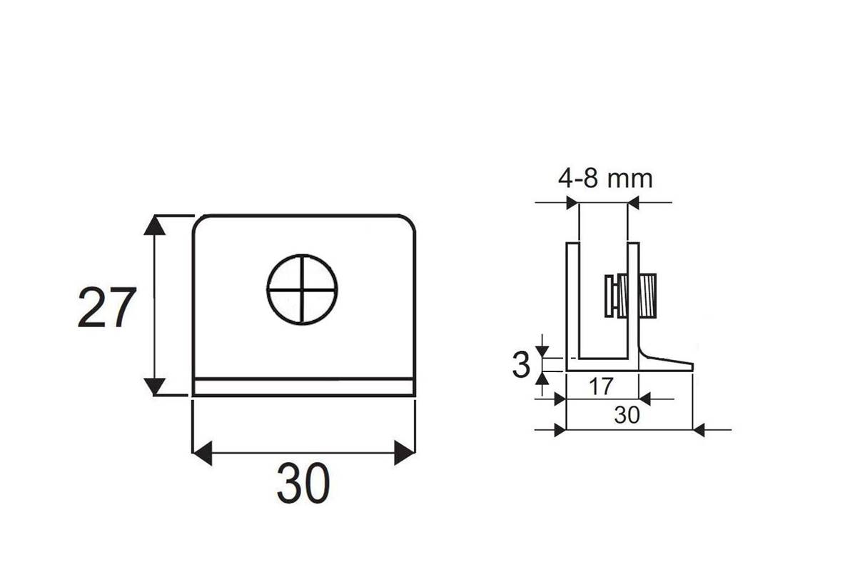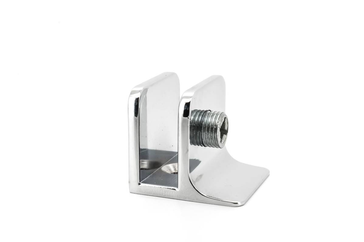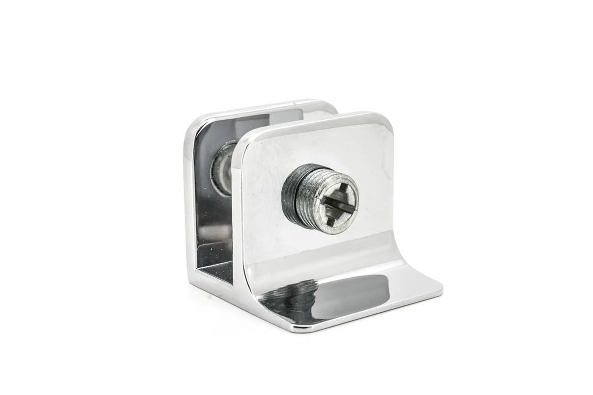 Cette pince est adaptée pour fixer des plaques de verre perpendiculairement ou horizontalement au mur.