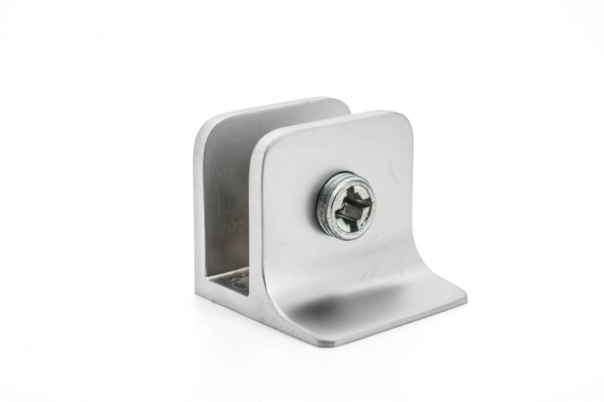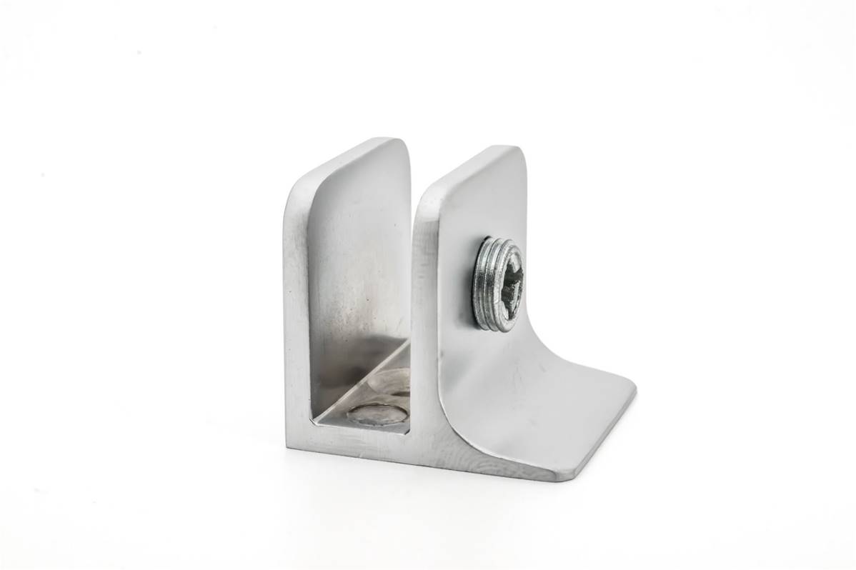 Cette pince est adaptée pour fixer des plaques de verre perpendiculairement ou horizontalement au mur.