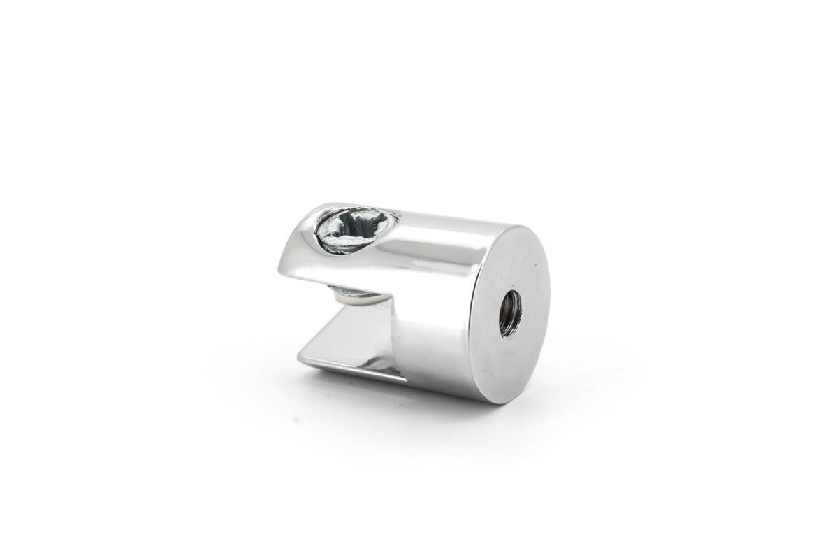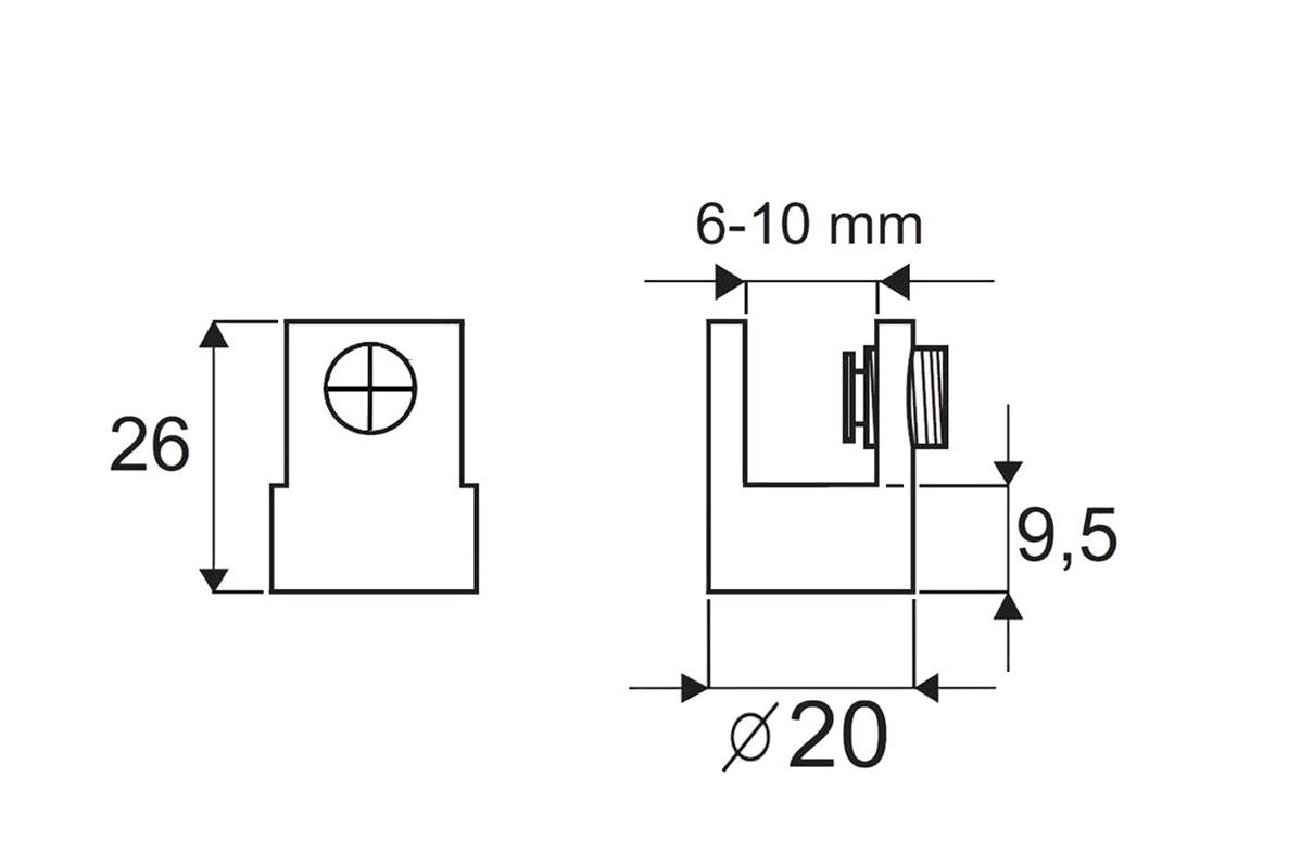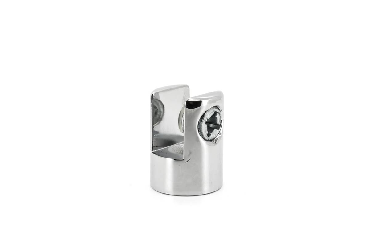 Cette pince est adaptée pour fixer des plaques de verre perpendiculairement au mur, entre autres.
