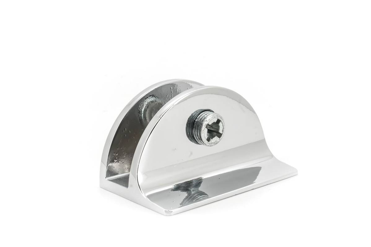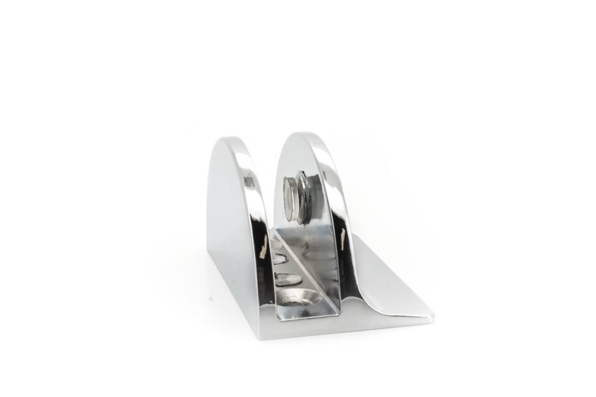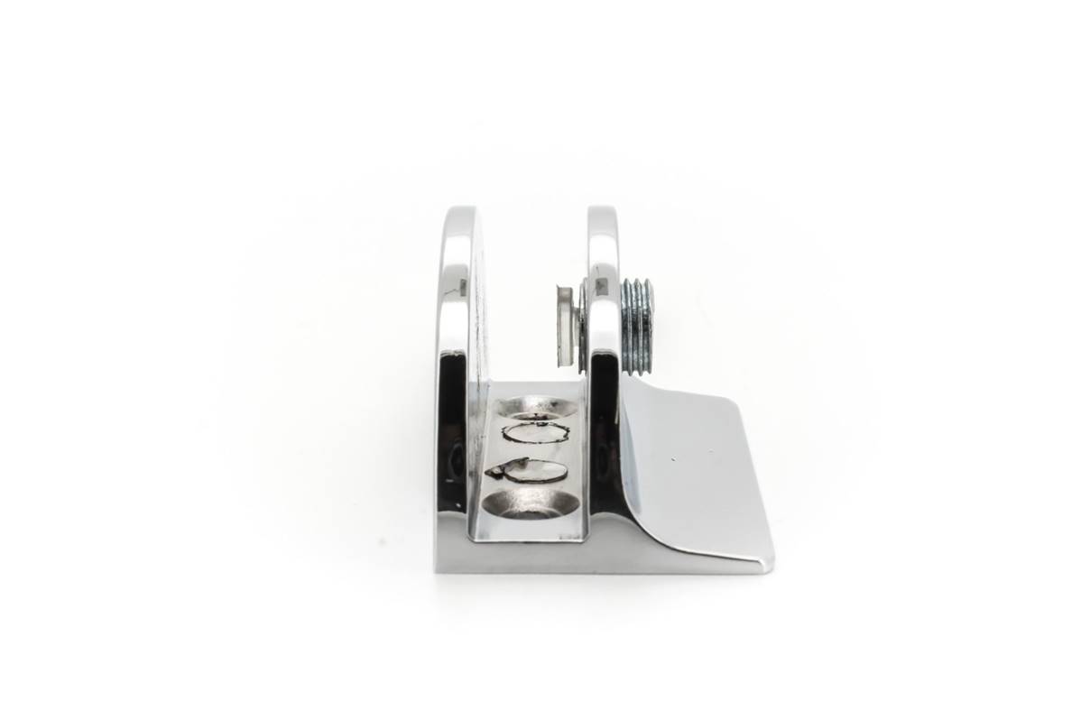 Cette pince est adaptée pour fixer des plaques de verre perpendiculairement au mur, entre autres.