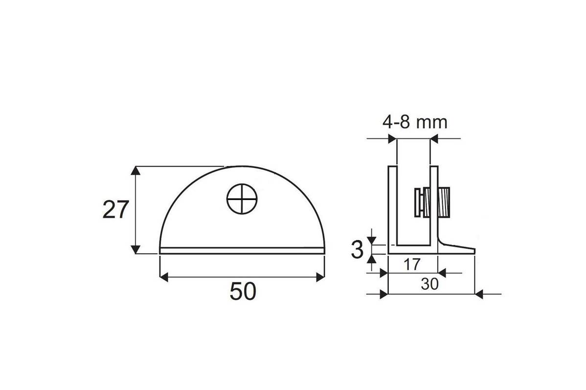 SUPPORT DE PLAQUE SEMI-CIRCULAIRE 50x27MM FINITION CHROME BRILLANT AVEC TRAVERSE
