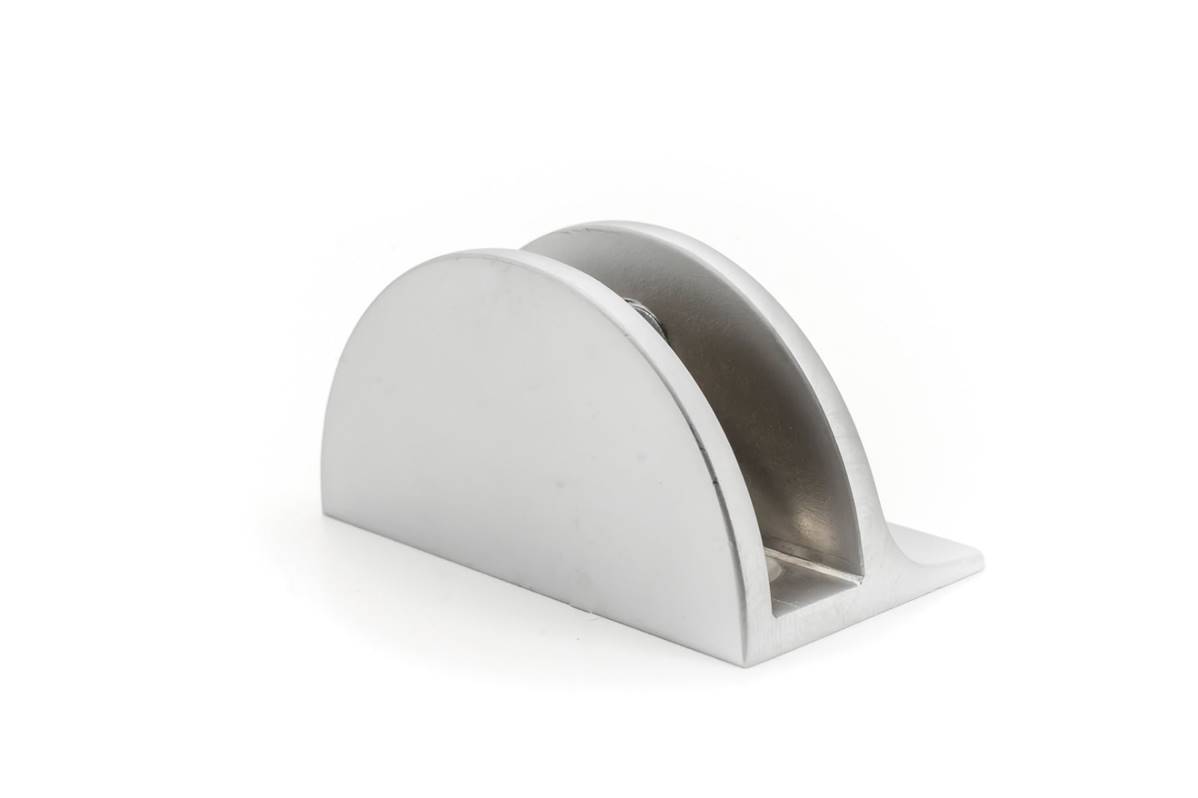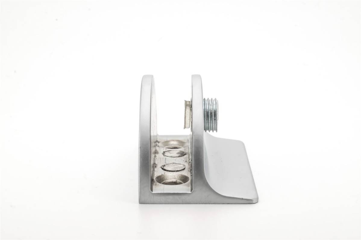 Cette pince est adaptée pour fixer des plaques de verre perpendiculairement au mur, entre autres.