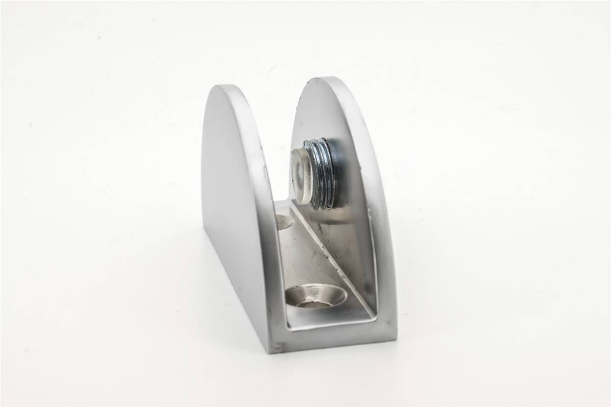 Cette pince est adaptée pour fixer des plaques de verre perpendiculairement au mur, entre autres.