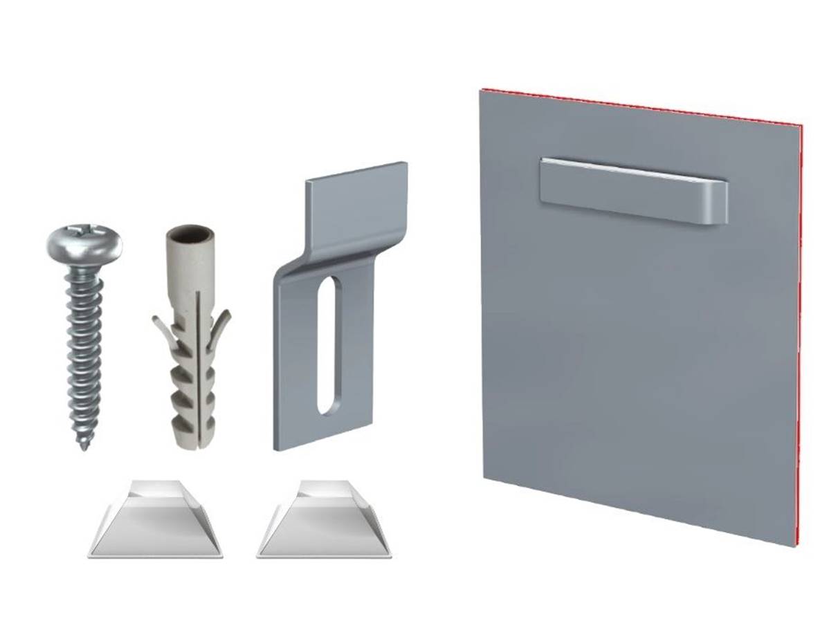 Il vous suffit de coller la plaque de suspension à l'arrière du panneau, après quoi vous pouvez facilement l'accrocher au mur avec le matériel de montage fourni.